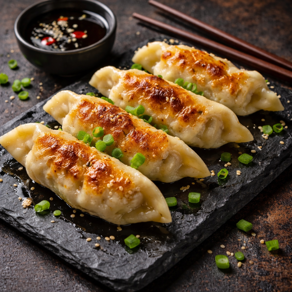 Nasza interpretacja klasyki – Tori Karaage, czyli soczysty smażony kurczak w chrupiącej panierce, podany z wyjątkowymi dipami: tonkatsu oraz słodko-kwaśnym na tłuszczu z Kobe. Do tego miseczka idealnie ugotowanego ryżu i świeże dodatki, które podbijają smak.