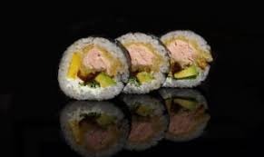 uramak z węgorzem w tempurze owinięty tuńczykiem i mango -